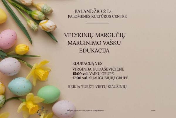 Balandžio 2d. 15 val. 17 val. Organizuojamas edukacinis užsiėmimas, kurio metu dalyviai mokysis marginti margučius vašku. Renginio metu bus aptariami Velykų papročiai ir tradicijos, pristatomi…