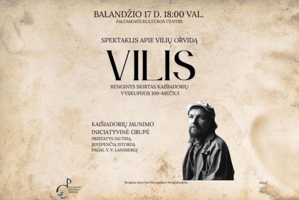 Balandžio 17 d. 18:00 val. Kaišiadorių jaunimo iniciatyvinė grupė pristatys spektaklį „VILIS“ pagal Vytauto V. Landsbergio kūrinį. Jautri, įkvepianti istoriją, kuri palies kiekvieno žiūrovo širdį.
