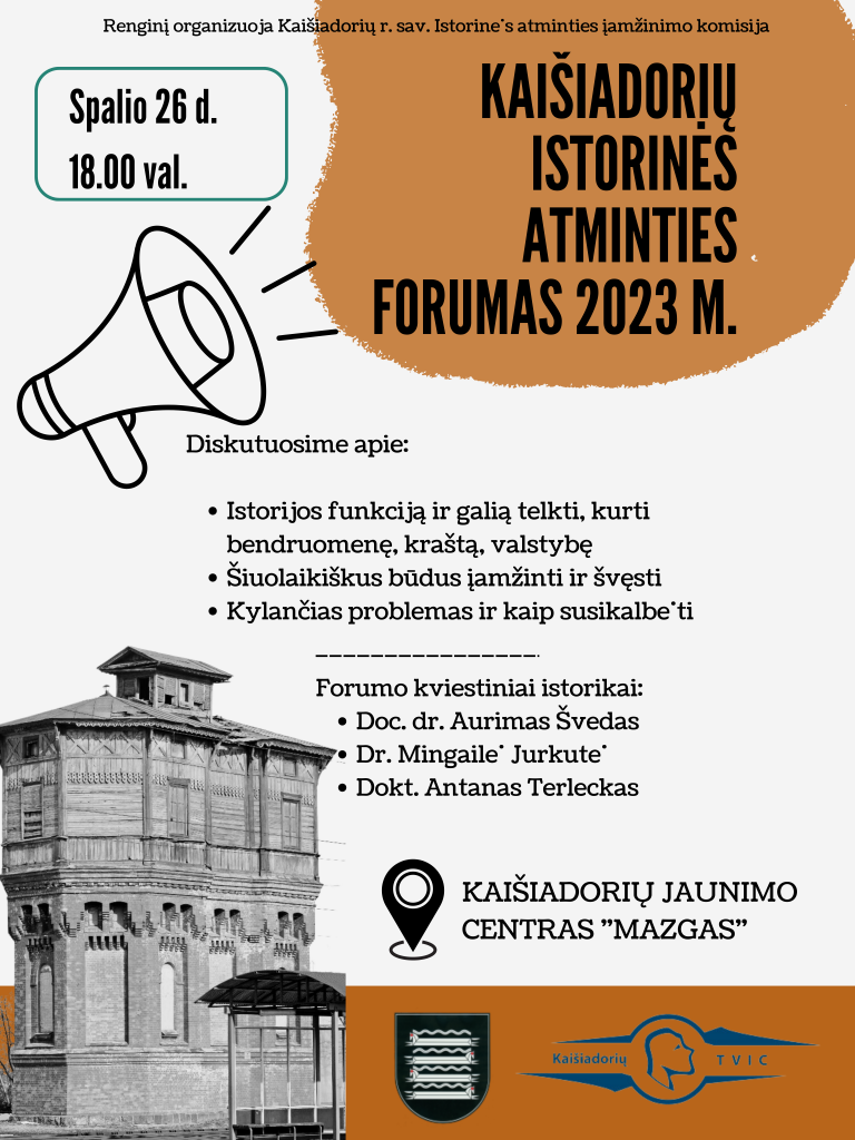 Kaišiadorių jaunimo centras „Mazgas“ ir Palomenės kultūros centras kviečia į istorinės atminties forumą 2023 m.
