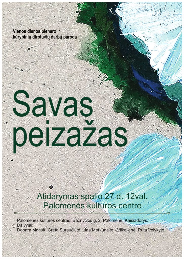 Spalio 27 d. kviečiame į vienos dienos plenero ir kūrybinių dirbtuvių darbų parodos atidarymą „Savas peizažas“.