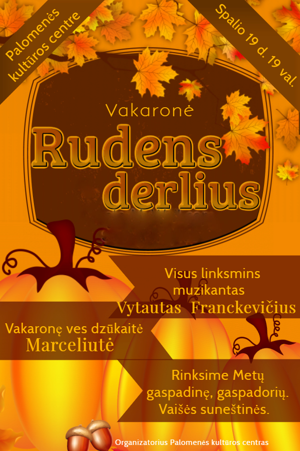 Spalio 19 d. kviečiame į vakaronę „Rudens derlius“. Visus linksmins muzikantas Vytautas Franckevičius, vakaronę ves dzūkaitė Marceliutė. Rinksime Metų gaspadinę ir gaspadorių.