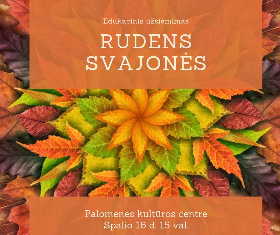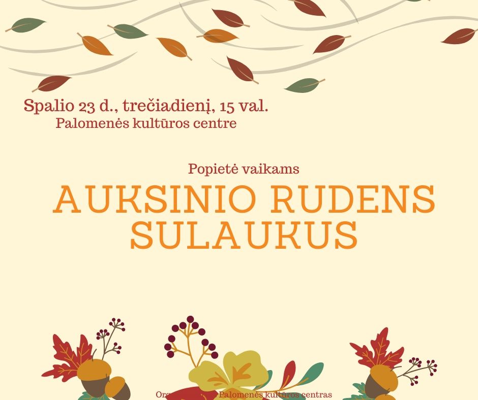 Kviečiame mažuosius paplepėti apie rudenį. Kalbėsime, sužinosime, prisiminsime, žaisime, gaminsime... Ateik į Palomenės kultūros centrą spalio 23 d. 15 val. Leiskime laiką kartu.