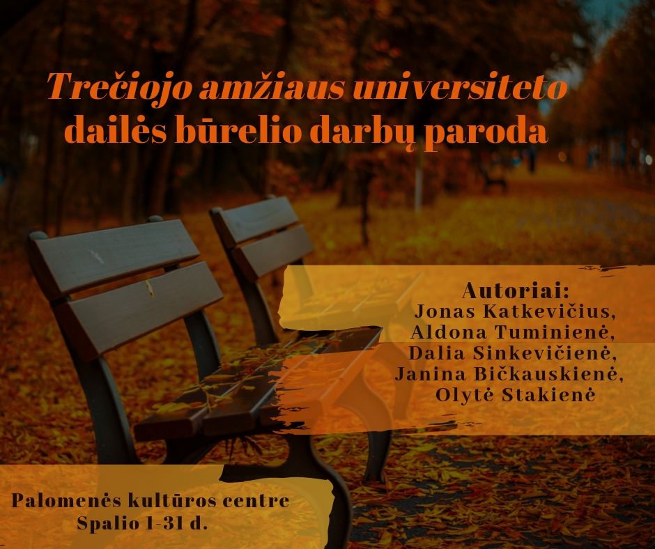 Spalio 1-31 d. kviečiame aplankyti Trečiojo amžiaus universiteto dailės būrelio darbų parodą, kurioje išvysite Jono Katkevičiaus, Aldonos Tuminienės, Dalios Sinkevičienės, Janinos Bičkauskienės, Olytės Stakienės darbus.